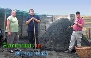 dichte und doch nicht dichte Ummantelung. Wahrscheinlich spricht er sogar mit dem glimmenden Holz, bis nach fünf bis sechs Tagen ein Ende in Sicht ist: Der Meiler kühlt ab, und dann wird er „ausgezogen“, sprich: aufgebrochen und geleert.