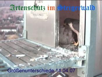 Deutlich zu erkennen die Größenunterschiede der Jungfalken. Vollpension bei Muttern und Vater was will man mehr............?
