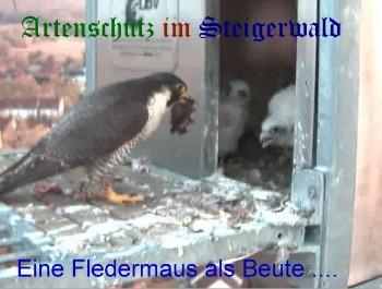 ... auch Fledermäuse wie hier ein "großer Abensdegler" stellen einen Bestandteil der Wanderfalkenahrung dar!