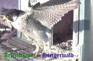 Als wolle er sich für dieses Jahr verabschieden, so zeigt sich am 20. Mai 2007 der Terzel allein am Nistplatz. Am 19.05.07 hat sich nun auch der kleinste der Wanderfalken vom Nistplatz entfernt.