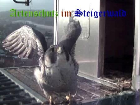 Auch in den Wintermonaten ist das Wanderfalkenpaar fast ständig an der Nisthilfe zu beobachten.