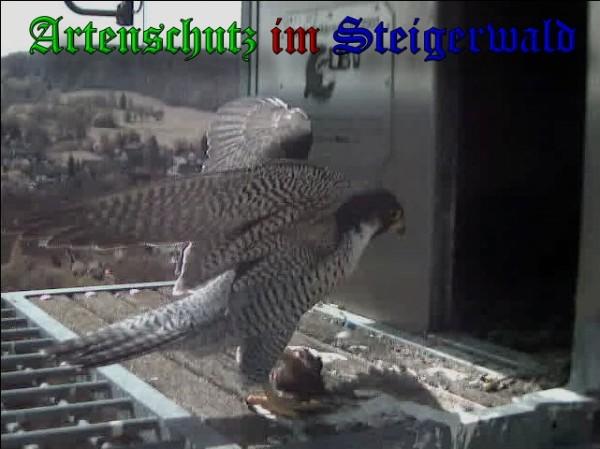 .. das Männchen ist mit der Nahrungsbeschaffung ... vornehmlich noch Kleinvögel ..