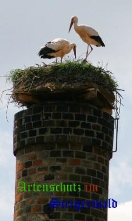 Die Aufnahme zeigt die Störche bei der Suche nach dem Abendessen in der sog. Hofwiese zu Reckendorf.