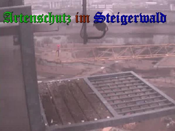 Der Kranausleger der nahe an den Nistplatz der Wanderfalken heran reicht wird von den Vögeln als Gefahr und Störung wahrgenommen ....