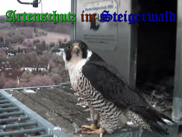 Wir meinen drei Jungfalken im Nistkorpus erkannt zu haben ....