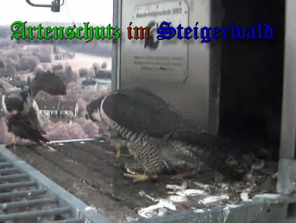 Und wo Jungtiere sind die Hunger haben muss auch Nahrung herbeigebracht werden .... hier die Übergabe eines Stars und der Eintrag in die Nisthilfe ....
