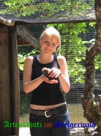 Christine mit dem Steinkauznachwuchs von 2008 - Zukunft in unserer Hand