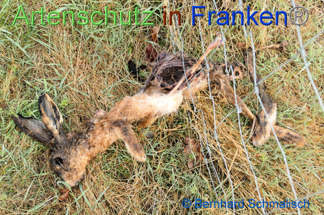 - Für einen Feldhasen wurde dieser Zaun zur Todesfalle, er verfing sich im Drahtgeflecht und verendete kläglich. Es sollte wirklich darüber nachgedacht werden wenn schon gezäunt „werden muss“ auch Zaunmaterial zu verwenden das die Tiere frühzeitig wahrnehmen und so artgerecht aufgebaut ist das dieses nicht zur Todesfalle, nicht „nur“ für Feldhasen werden kann.